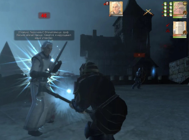 Вышли на балкон: ба, какая встреча! Все трое здесь – Даджин, Ледоскальт и Ясмина. Пожалуй, барона можно сбросить со счетов; он у этой парочки на роли клоуна. Всё идёт по старому сценарию: Ледоскальт блокирует вход, обрушив стену на несчастную Мору, а Ясмина пытается преподать урок мне и Ардо. Через пять минут Ардо всё же был убит, но я успел основательно потрепать магессу. Хотел было добить, как в дело вмешался Ледоскальт, а Ясмина снова увернулась от моего молота. Ну что за невезение, второй раз не могу её прикончить!