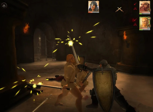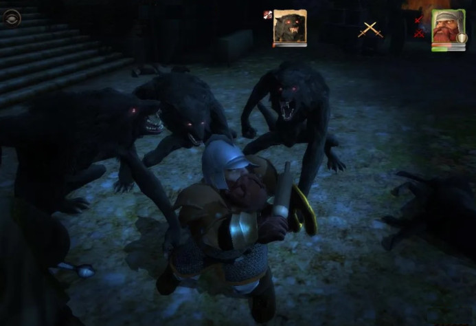 Взяли из сундука факел, прошли тёмный лес, отыскав в одном из его углов полуразрушенную башню с сундуком – вот что охраняли волки, сокровище! - и добрались до потайного входа. Что за сброд набирает барон к себе в услужение? Умом они точно не отличаются: бросились в атаку на двух воинов, при одном взгляде на которых должны были спасться бегством. Если всё его войско таково, больших проблем не будет. Входим в подземелья.