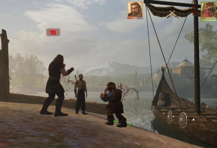 Разыскивая стоянку торвальцев, обнаружил перегонщика скота Хайо, у которого в районе таверны «Ласковый бык» пропал спутник, Богумил; поспешил туда. Трактирщик Раскоп поднял меня на смех, Богумил – это бык, чем-то его впечатлила вывеска магазина, украшенная старым шлемом. Убедил Раскопа отдать шлем мне, но бык – ни с места. Торговец советует найти другого гнома, тогда бык пойдёт. Явный намёк на Форгримма! Ну уж нет! Этак всю игру придётся ходить в команде, а у меня совсем другое задание. Оставил шлем себе и поспешил к торвальцам, их корабль вытащен на берег неподалёку.