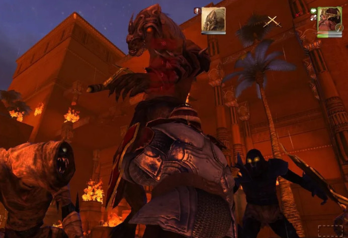Довольно легко перебили небольшой отряд прихвостней Безымянного и нашли первого союзника, Хранителя Знаний. В обмен на помощь он просит найти его дочь. Отыскали её на нижней террасе - Одания засмотрелась на сражение и не заметила, как была окружена врагами. Отвели бедняжку к отцу, но слишком поздно: Ниртана обвинила Хранителя Знаний в предательстве и приказала казнить его. Кажется, ту же участь она приберегла и для нас. Но сработало умение «убеждение» - Ниртана перешла на нашу сторону; два клинка и молот легко справились с не в меру ретивыми стражниками. После победы над эльфийской охраной Одания принялась болтать о такой чепухе, что я почти ничего не понял, стоял и хлопал глазами. Ясно лишь, что для проникновения во дворец нам нужна помощь Бъюндалы. На прощание Одания подарила рецепт «святого эликсира», великолепная вещь! Эх, этот бы рецептик чуточку пораньше…