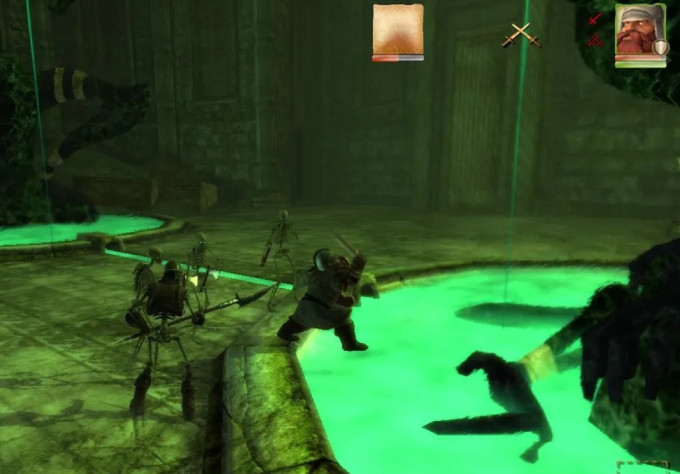 Подошёл поближе, и ту же появилась охрана в виде четырёх скелетов; выскочили из бассейна. Знакомая ситуация: если начать колотить охрану, на смену уничтоженным врагам придут новые, скорее всего, более сильные. Значит, нужно уничтожать статуи. Уворачиваясь от скелетов наточил топор и с рёвом «Барук казад!» бросился к ближайшей статуе, но в последний миг передумал, и взял в руки скалку.