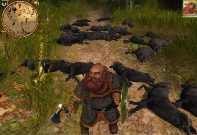 Поднимаюсь по каменному мосту над рекой и попадаю в засаду: снова орки и целых два тролля. Попытался отбежать; не тут-то было, вся орда разворачивается и поднимается назад, на мост. Надвинул шлем поглубже и с криком «Барук казад!» кинулся в толпу врагов. Ох, и задали жару тролли! Поочерёдно сбивали меня с ног, так что еле успевал пить лечебные зелья, едва справился. Но пути вперёд нет, дорогу перекрывает дерево. Регент Энно Фердокский тонко намекнул, что охотиться сейчас не на кого, а его слуги не сумеют убрать дерево мгновенно. Ну и ладно, посмотрю, что там в Надорете.