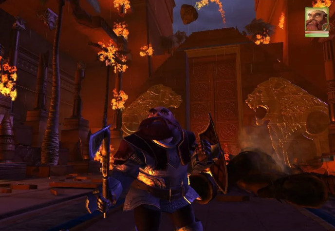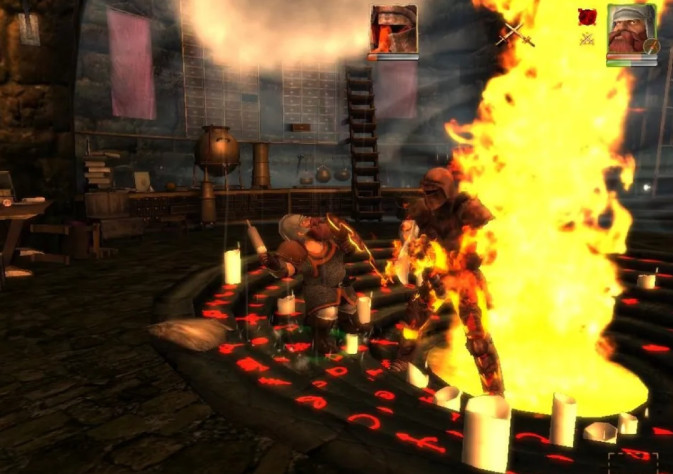 Сейчас узнаю, кого Брукбород пригласил в гости! Ха, всего лишь огненных элементалей! А дождик вам не нужен? Что, не загорается мокрый гном? Получите скалкой!