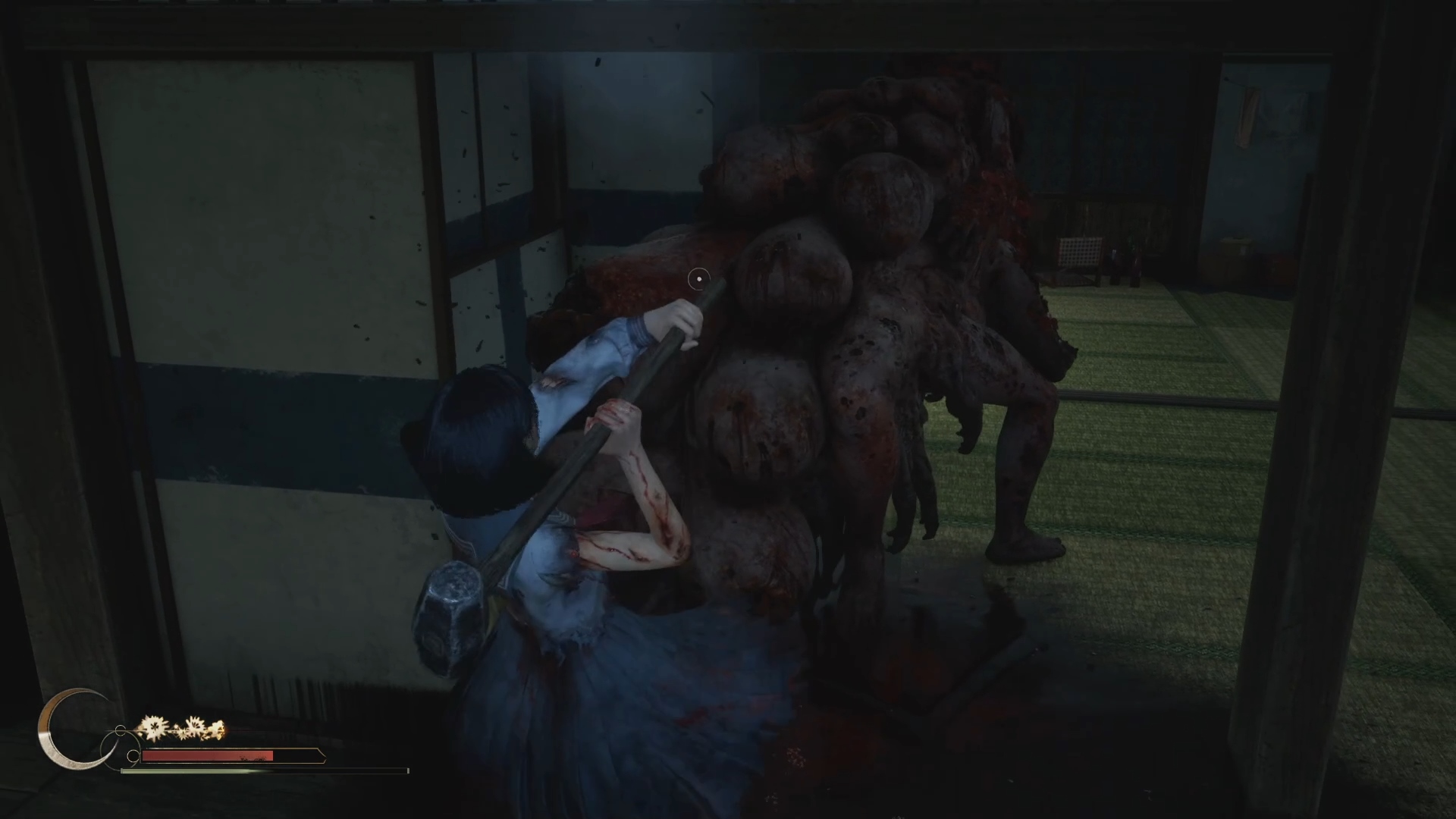 Но чтобы у вас вдруг не сложилось впечатление, что игра мне прям во всём понравилась, перейдём к огорчающим аспектам Silent Hill f. Начнём как раз с недавно упоминавшихся шарнирных чучел. Местный зверинец не то чтобы меня разочаровал, но… Оставил желать лучшего. А как хорошо ведь всё начиналось! Сшитые из разных частей тел куклы и по совместительству стартовые противники щикарны. В них сочетается и определённая грациозность, и резкие непредсказуемые движения, и криповая пластичность. Их версии из альтернативного мира ещё отвратительнее из-за кукольных лиц и ну совсем уж хаотических действий, вынуждающих панически уворачиваться и тратить выносливость впустую.