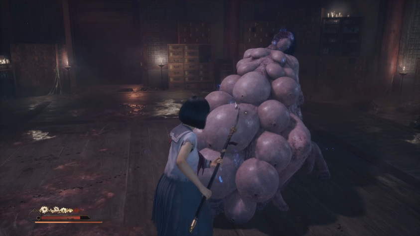 Так, ладно. Это всё равно не объясняет, каким на хрен образом лапа лисы помогает нам в упокоении бессмертных врагов. Путём окончательного уничтожения их душ, конечно же! Вообще, с появлением этого, простите, «оружия» Silent Hill f действительно становится полноценным битемапом, а арены с кучей врагов из редких раздражителем превращаются в основной геймплейный элемент, с которым придётся мириться вплоть до финальных титров. А потом снова мириться столько раз, сколько альтернативных концовок вы заходите из игры выжать. К счастью, вся прокачка переносится в «Новую Игру+», так что страдать от немощности Хинако и тесных карманов её школьной формы больше не придётся.