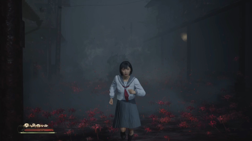 Но место действия мне и правда очень понравилось. В нём нет той атмосферы заброшенного курортного рая, но оно пестрит своим собственным шармом, отчего запоминается не хуже. Хотя, слово «пестрит», пожалуй, не очень подходит бесчисленным серым тропинкам Эбисугаоки, — но по мере того, как цветущий ликорис и хтоническая жуть будут поглощать город, его пейзажи будут становиться всё более красочными. У «ужаса» Эбисугаоки вообще очень характерный визуальный стиль, отличающий «фэ» даже от наиболее леворезьбовых игр серии. Но это хорошо — освежает впечатления от исследования.