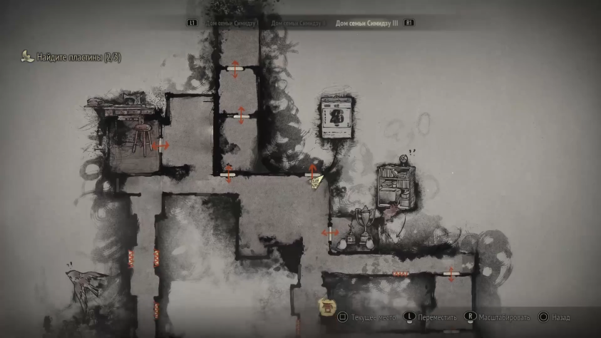 Кстати, да. Просмотр карты перебрасывает на отдельный экран и приостанавливает игровой процесс, а не происходит прямо на месте, как в ремейке SH2. Вроде и спасибо за возможность перевести дух и сориентировать собственное паническое бегство в спокойной обстановке, но такой «олдовый» подход ломает ощущение игры как единого и неделимого произведения. Я уж молчу о том, что в каждой новой большой локации карта появляется в карманах Хинако автоматически и дорисовывается с каллиграфической щепетильностью, наполняясь рисунками и обозначениями. На самом деле, очень полезная штука, т.к. такие скетчи прямо на карте помогают вспомнить, где что находилось, без надобности перебирать помещения по второму разу… Но я с трудом себе представляю, каким на хрен образом девушка успевает так круто рисовать, когда вокруг творится ад. Туманные кошмары вдохновению не помеха.