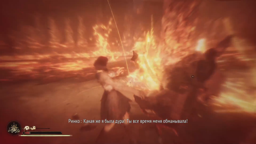 Хинако сама себе отпилила руку, и прислуга человека в маске заменила её огромной волосатой лисьей лапой… Которая ещё и увеличиваться по желанию умеет! Во-первых, спасибо за сцену отрубания конечности, из-за которой я себе чуть череп не раздавил, а во-вторых… ШТО. Я считал себя человеком широких взглядов, даже хомкоминг проходил, — но тут игра такая: «Да? Ну давай посмотрим, насколько широких».