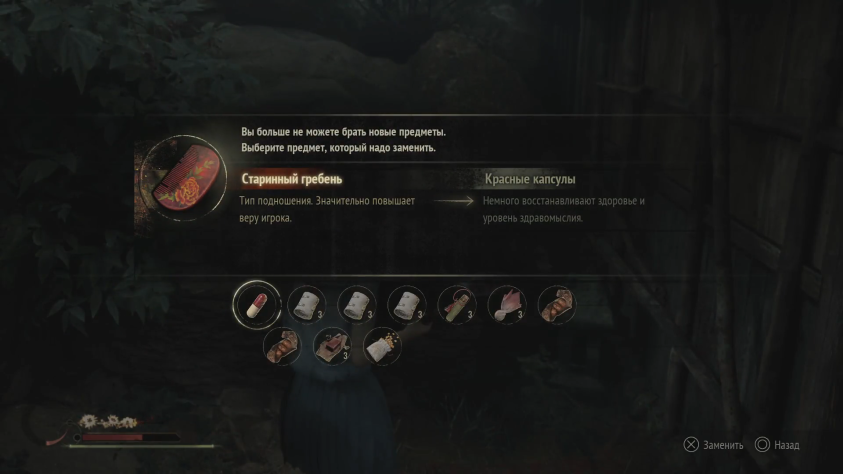 С учётом такого количества видимых шкал, непосредственно участвующих в геймплее, авторы насочиняли целую россыпь их пополнялок. И у меня есть две новости! Не гадайте — они обе плохие. Во-первых, инвентарь не резиновый и вмещает в себя лишь 3 вида оружия и 8 расходников.
