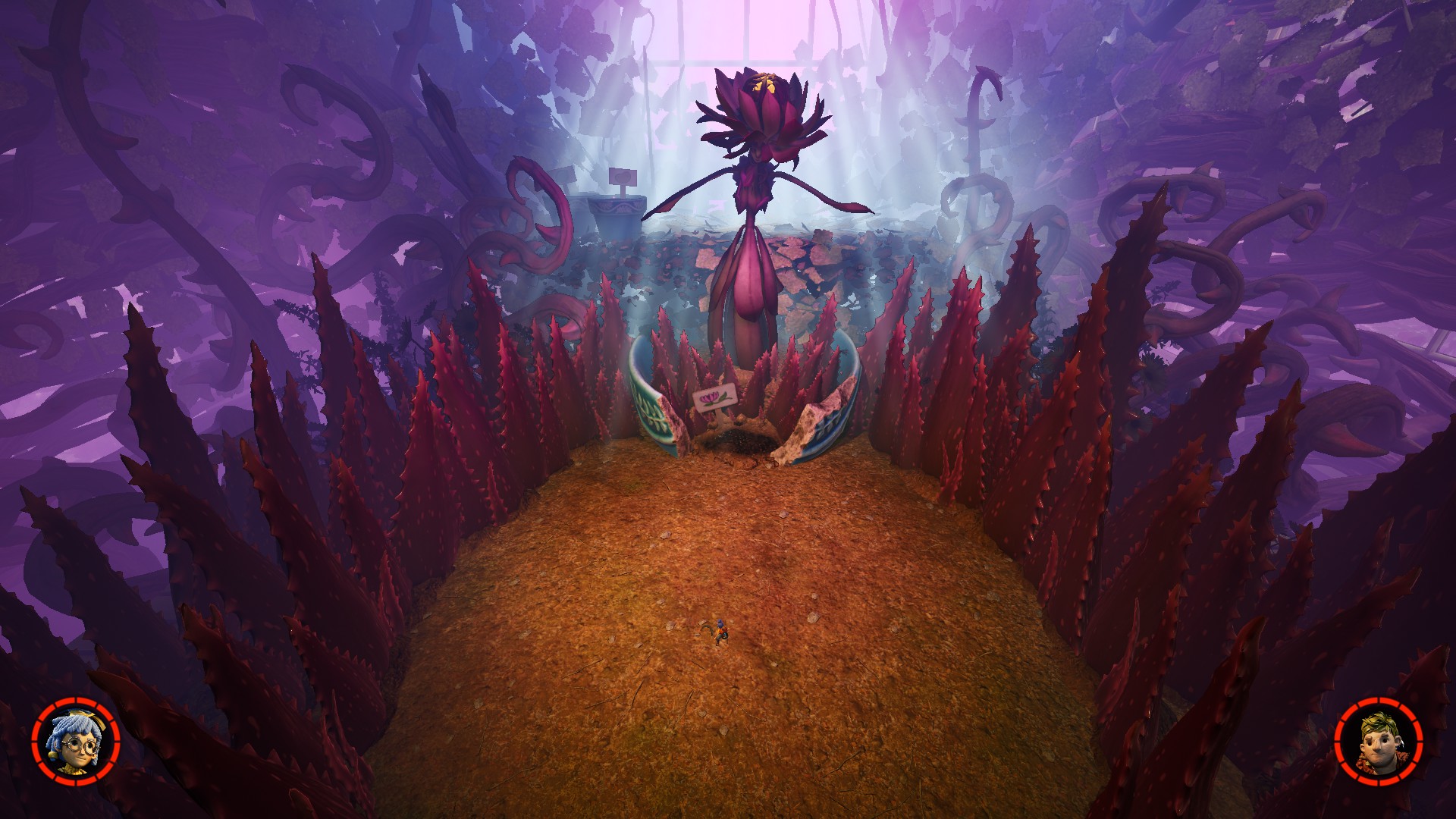 И, наконец, битва с боссом. Кто может быть боссом в такой игре? Давно забытый в сарае пылесос, игрушка обезьянка, ящик с инструментами, заболевший цветок и другие предметы повседневности, которым есть за что нас ненавидеть. Битвы несложные, каждого босса не придётся долго калупать, потому что тут благосклонна к игроку система чекпоинтов, а если в живых остался ваш напарник, то возрождение будет по ходу битвы без загрузки с чекпоинта, а ещё действия босса заучить не составит труда.
