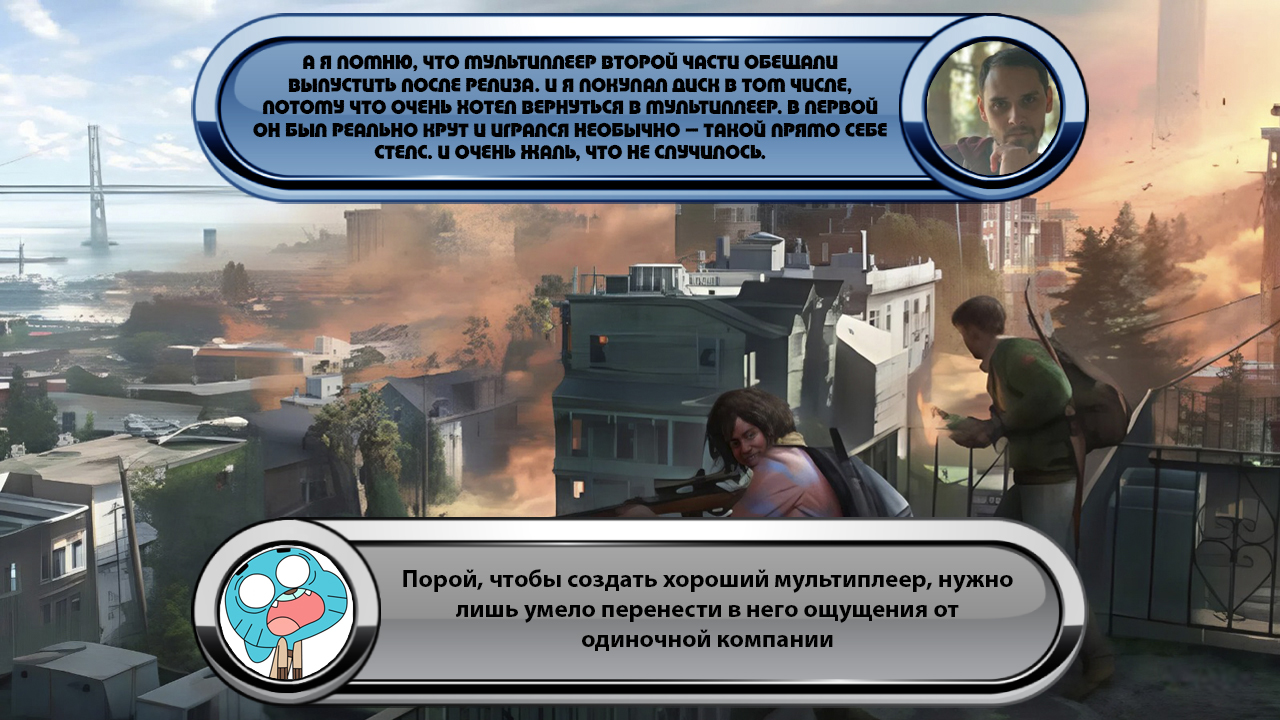 Но на удивление существовали и такие мультиплееры, которые запросто могли дать прикурить да хоть той же самой Call of Duty по своей глубине и проработке. Это были смелые проекты, которые искусно вплетали ощущения от одиночной компании в мультиплеерный режим. И одним из таких смелых, уникальных и новаторских был мультиплеер первой части The Last of Us. А вот что в этом режиме такого уникального вам расскажет автор блога, за что ему большое спасибо.