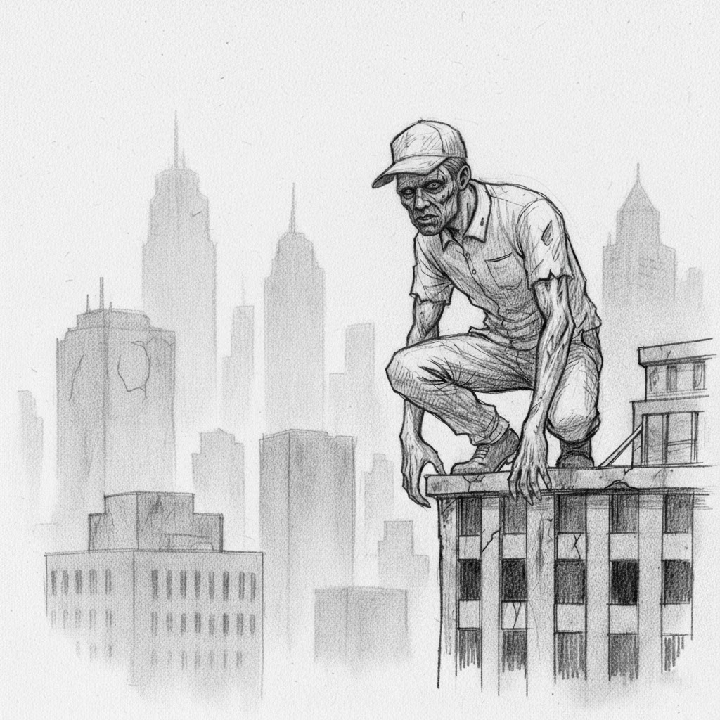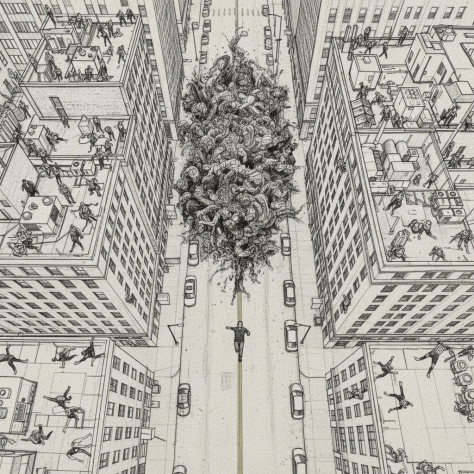Один за другим они бросаются вниз, разбиваясь о асфальт перед ним, пытаясь достать его. Сросшиеся мать и дочка, клубок из трех детей. Старушка! Все они взрываются, заливая улицу кровью и внутренностями. Брайан петляет и перепрыгивает через останки. Наконец, в полуквартале от цели прыжки прекращаются. Он оглядывается на поле бойни. Достает оружие в полной готовности.