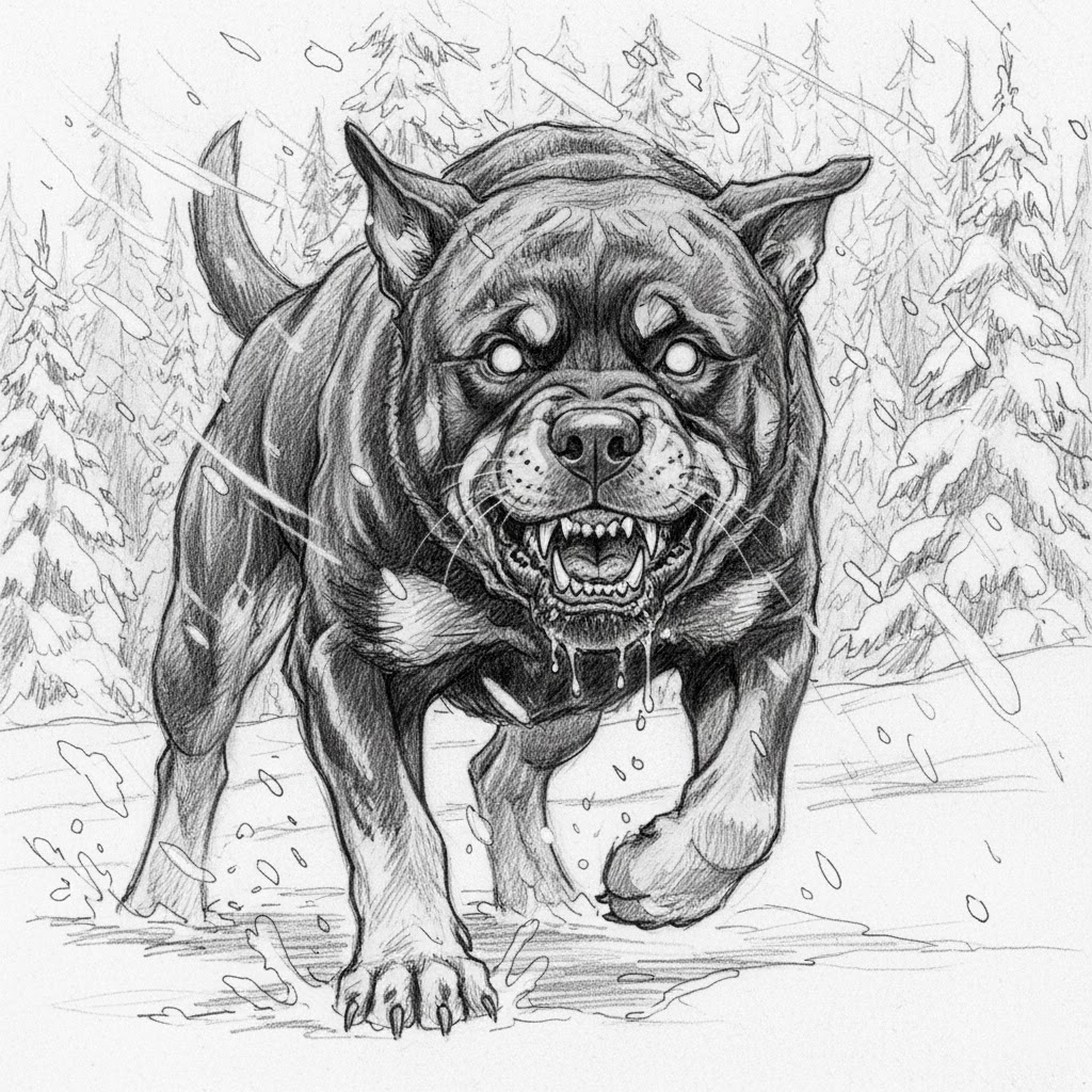 Едва он оказывается по ту сторону, как тишину разрывает лай. Сначала отдаленный, потом все ближе. И вот из снега выбегает черный ротвейлер, несясь прямо на него.