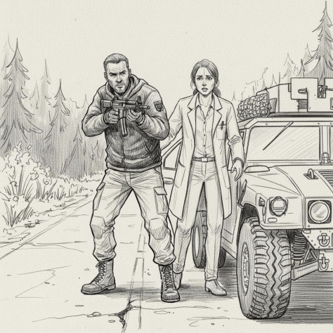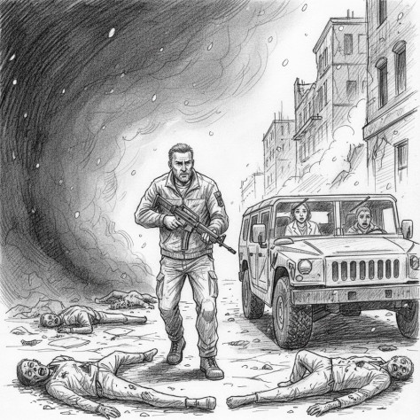 Он поворачивается к больнице. Здание похоже на разбомбленную крепость, но на верхнем этаже горит свет. То, что нужно. Напрямую не пройти. Вестибюль кишит зараженными. Справа он находит парковку, закрытую ставнями с массивным замком.