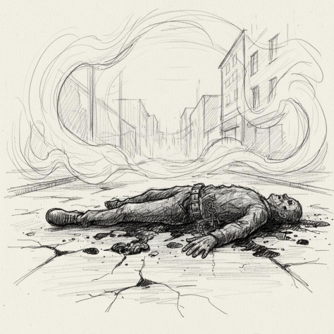 Брайан бросается вперед, что есть силы. В ответ работник издает пронзительный вопль, с разбега прыгает с крыши и разбивается о землю прямо перед ним, разлетаясь на куски.