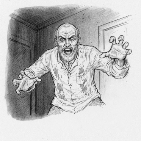 Шаг сменяется бегом. Женщина все так же настойчива. В последний момент, когда она почти догнала, ему наконец удается все сделать. Пистолет готов к выстрелу. Брайан оборачивается… но никого нет. Тяжелое дыхание. Руки дрожат. Брайан пытается успокоиться и смотрит по сторонам. Ничего. ВНЕЗАПНО ЖЕНЩИНА С ДИКИМ ВОПЛЕМ ВЫРЫВАЕТСЯ ИЗ ТЕМНОТЫ! Брайан вскидывает пистолет.