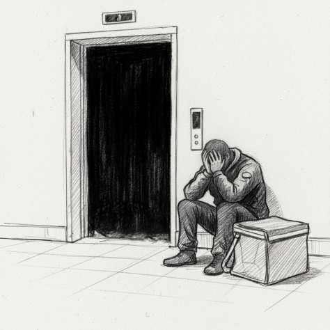Выбившись из сил на четвертом этаже, он замирает в нерешительности. Может, рискнуть и вызвать лифт? Ничего страшного ведь не случится? Он нажимает кнопку. К его удивлению, двери открываются. Он делает глубокий вдох и осторожно заходит внутрь. Кабинка трогается.