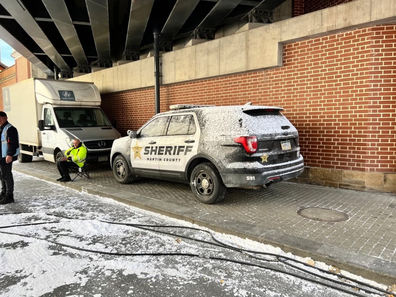 Возле патрульного автомобиля офицер пытается вызвать подкрепление по рации, но связь весь день сбоит из-за погоды. Брайан пытается объяснить, что торопится доставить срочный груз в больницу и не заметил, что на дороге кто-то есть.