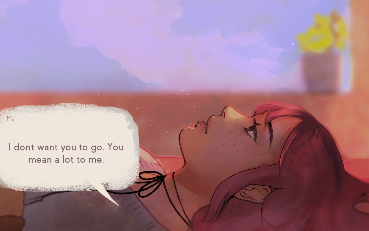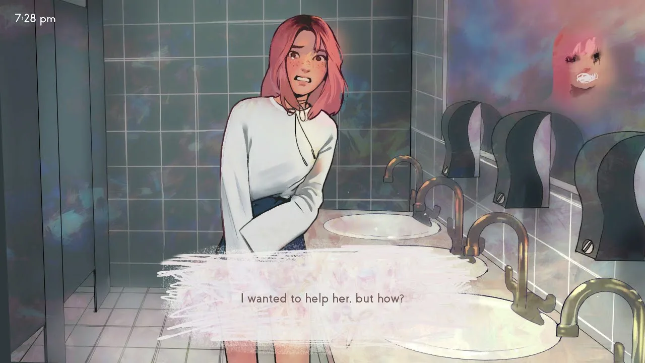 Визуальное оформление игры напоминает теплый плед в холодный вечер: оно окутывает уютом и создает иллюзию безопасности. Яркие краски и милые образы отвлекают внимание, заставляя поверить в безобидность происходящего. Но что скрывается за этой привлекательной картиной? Трагедии, душевные терзания и мрачные мысли о саморазрушении проявляются сквозь глянцевую поверхность. Несмотря на внешнюю миловидность, визуал скрывает глубокую и печальную историю, полную переживаний, суицидальных мыслей и многого другого.