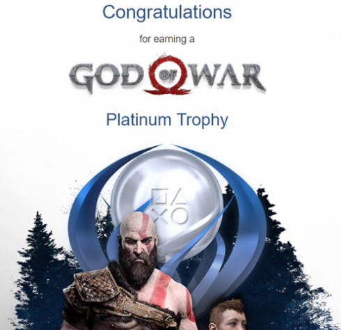 Я точно получал такое сообщение за Bloodborne и Days Gone, но почему-то не могу его найти. Так что вот вам картинка из интернета на примере перезапуска God of War (2018).