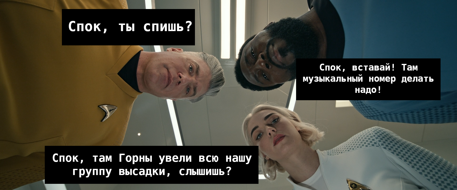 По хронологии, правда, сериал происходит примерно после второго сезона «Дискавери» и технически с ним даже связан, но по сути так слабо, что не имеет значения, знаете ли вы о «похождениях» Пайка в храме клингонов или нет — в общих чертах суть до вас донесут. Ну, а «сестра» Спока и сам «Дискавери» толком не упоминаются, и вообще никакой роли в сюжете не играют (по крайней мере в тех сезонах, что уже вышли).
