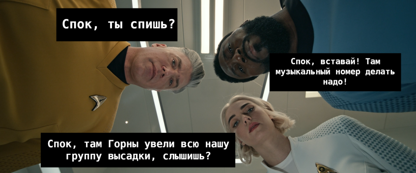 А вот последний на данный момент сериал — «Странные новые миры» мне тоже очень понравился и его я вполне могу рекомендовать почти всем, кому интересна франшиза, но он не знал с чего начать. Потому что сюжетно он происходит даже до «Оригинального сериала», а значит знаний о вселенной потребует минимальных. В сериале даже Кирка почти нет. Ну точнее их тут даже два, но они пока что на вторых-третьих ролях и их как будто бы нет. Зато Спок тут есть, и его много. Но Спока, кажется и так все знают. Конечно тут ещё есть Ухура, и медсестра Чапел, и даже Скотти недавно появился. Но даже если вы новичок во франшизе и понятия о них не имеете, то большой роли это не играет — вас всё равно с ними познакомят.