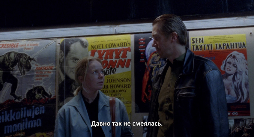 Третий фильм тоже не лишён некоторой абсурдности, но в данном случае за счёт полнейшего упрощения актёрской игры. Это довольно странная финская комедия. Хотя как комедия поначалу она даже и не выглядит. Хотя шутки тут вообще-то есть. Но из-за особенностей актёрской игры, когда все персонажи проговаривают реплики с, что называется, ровными лицами, они даже не выглядят сильно смешными. Но потом, когда ты «вливаешься» в эту струю финского юмора это всё начинает казаться крайне забавным. Особенно их реакция, хотя точнее будет сказать отсутствие реакций на некоторые события. И такое утрирование даже добавляет фильму какого-то очарования что-ли. Тут уже смотришь больше не за тем как говорят, а больше на то что говорят. Во время просмотра я даже в какой-то момент поймал себя на мысли, что мне вообще-то интересно как будет развиваться история дальше. При том, что в основе своей это история о любви.