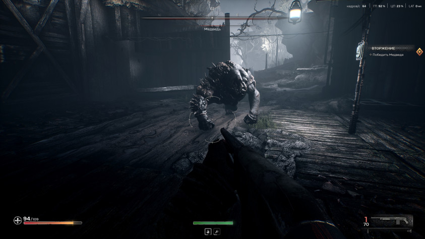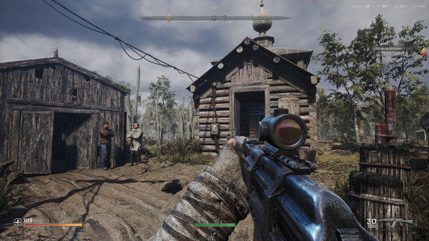 И стилистически это какая-то мозаика из разных игровых вселенных, которая не всегда складывается во что-то цельное. Разбойничья пустошь по дизайну напоминает то ли пустыню Мохаве из Fallout: New Vegas, то ли планету Пандора из Borderlands, приправленную гигантскими грибами, будто попавшими сюда из Morrowind. Мрачная топь — карту из Hunt: Showdown, со всеми этими замшелыми деревьями и завалившимися мануфактурами — разве что здесь и там расставлена советская техника.