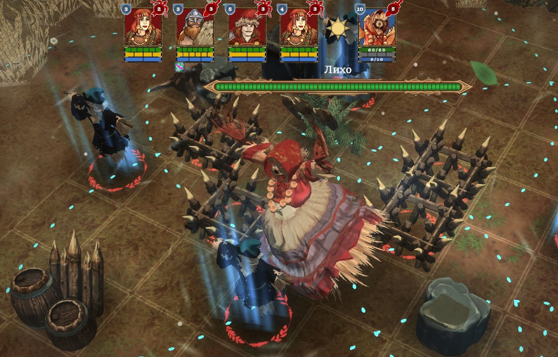 Против Лиха требуется хотя бы пара заклинаний «Раскол» с мощностью в четыре единицы, минимум одно «Оглушение» - учтите, что после его применения босса нельзя будет оглушить два раунда – и одно-два «Вдохновения» с эффективностью в две-три единицы. (Это если вы взяли в академии улучшение «Книга заклинаний».) Отряд лучше расположить как можно дальше от босса – чтобы она не смогла нанести урон в первом же раунде. Атаку стоит начинать с применения способности лучницы «Метка охотника»; ваши воины смогут наносить увеличенный урон любой атакой. Дальше – как повезёт.
