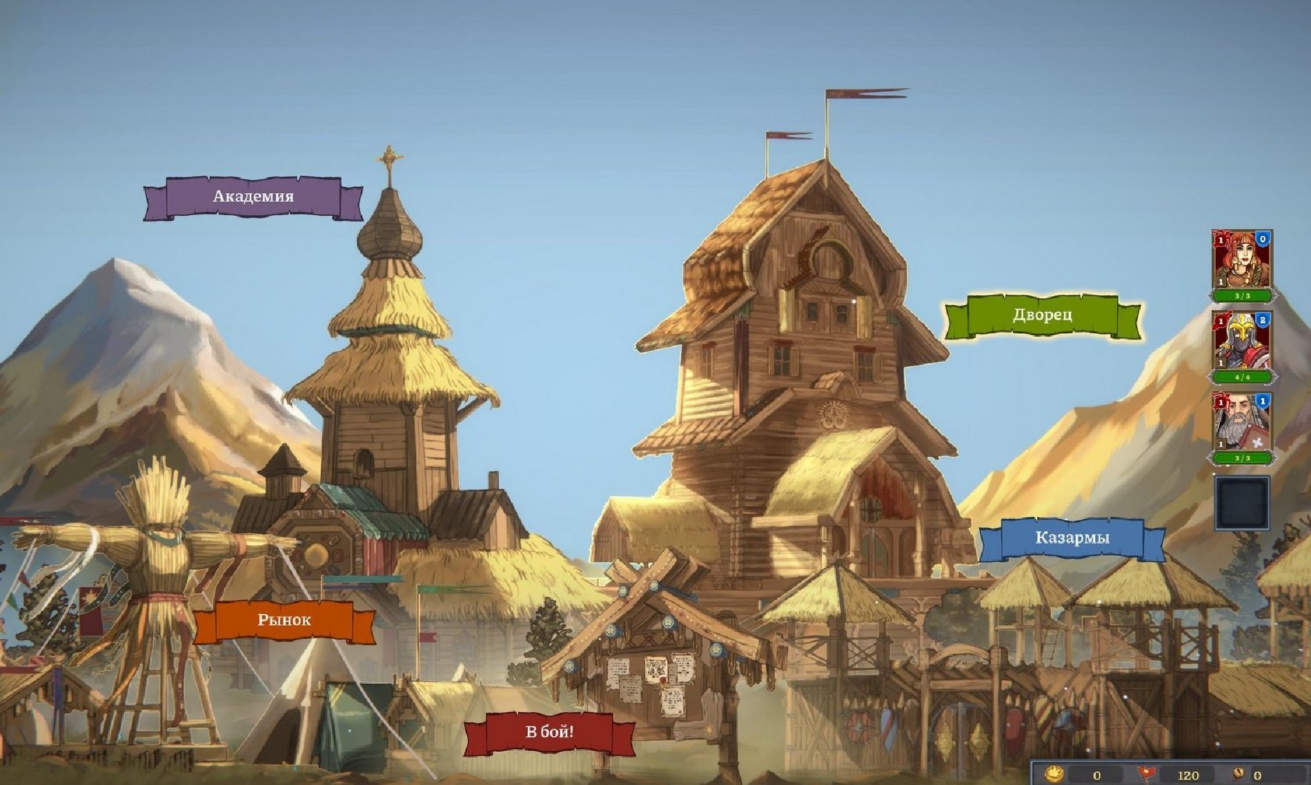 Казармы отвечают за найм и развитие ваших бойцов; дворец – за награды и тактическую составляющую; академия – за общие заклинания, применяемые во время боя; рынок – за покупаемое снаряжение. Изначально городские строения позволяют лишь немного улучшить параметры игры, но при помощи добываемой славы и трофеев чудовищ (по-простому – глаза боссов!) их уровень можно повысить, ещё больше увеличив игровые возможности.