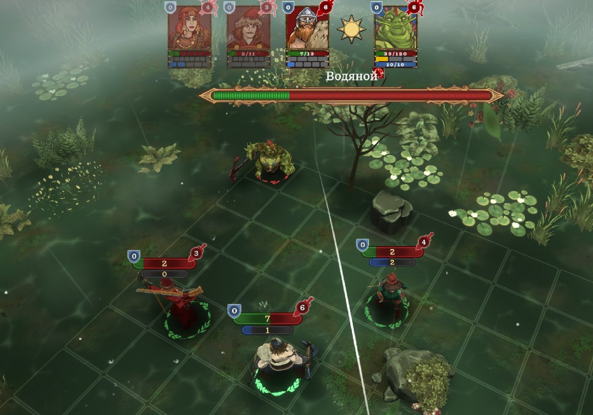 Третий, и последний на сегодняшний момент босс – Водяной. Брони столько же, как у Горыныча; гораздо больше «жизни» и крайне неприятное умение атаковать на любом расстоянии.