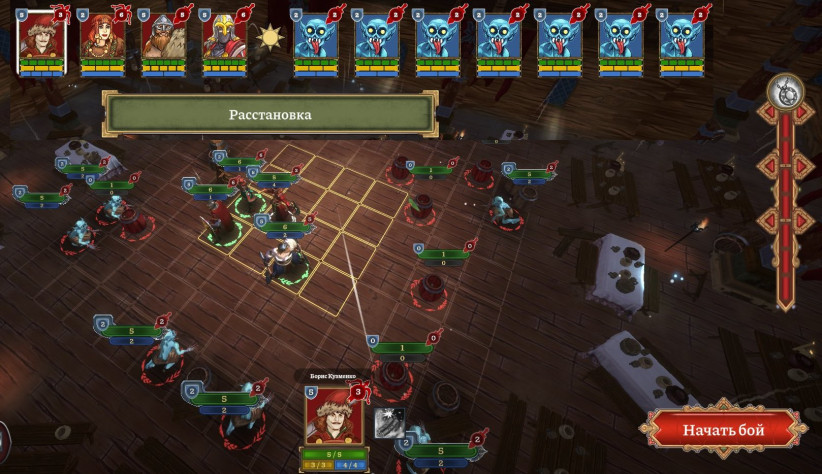 Первый ход в любом сражении всегда ваш; он не даёт возможности нанести урон врагу, но позволяет наиболее оптимально разместить ваших бойцов на карте.