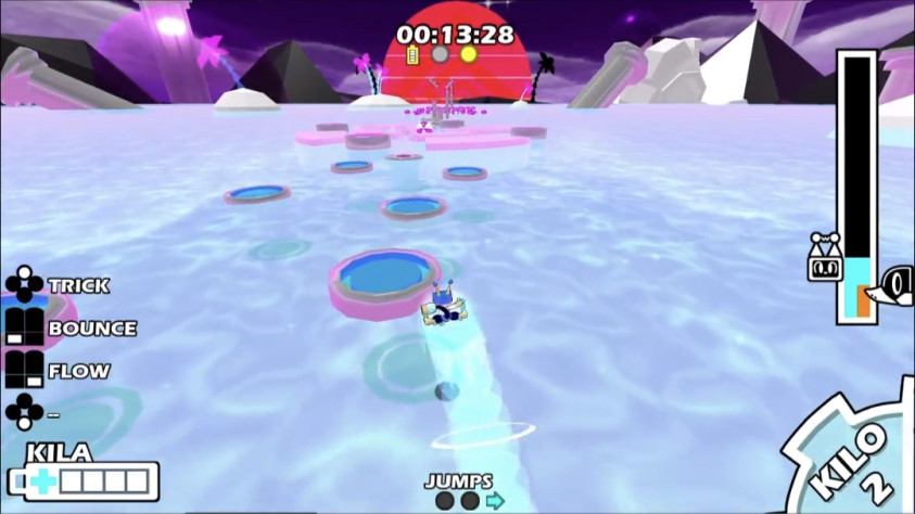 Уже после первой пары обучающих уровней игра даёт понять, что зависимость «качества» прыжка от пойманного момента инерции — это не прикол для спидраннеров и уж точно не случайность, всплывшая из-за непродуманности геймдизайна. Освоить этот «аккорд» придётся на зубок, иначе вы тупо не сможете продраться через туториал. А я ещё даже не заикался о применении кнопки ускорения по прямому назначению, когда Кила врубает турбонаддув и летит вперёд, сметая всю враждебность на пути. Но стоит вписаться в стену или хотя бы на секунду остановиться и задуматься — всё, весь разгон потрачен. А улететь куда-то не туда тут проще простого.