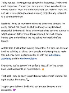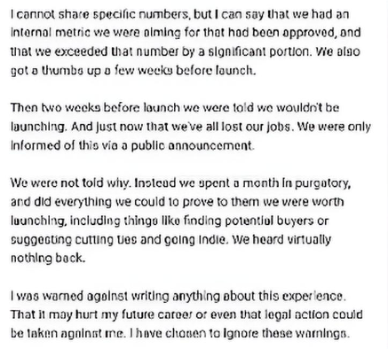 Вот только в данной истории всё довольно странно. По сообщениям разработчиков, они узнали об отмене только из официального заявления издателя, а добиться вразумительного ответа им так и не удалось.