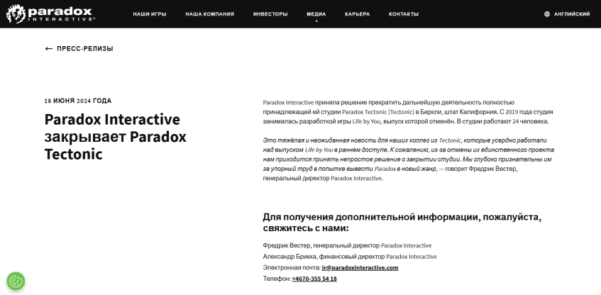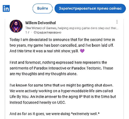 17 июня 2024 года было печальным для фанатов симуляторов жизни, ведь именно в этот день Paradox отменила нашумевшую Life by you, над которой работал геймдизайнер Sims 3 Род Хамбл.