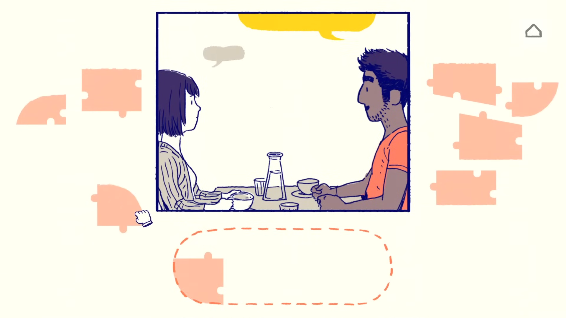 И для иллюстрации, думаю, отлично подойдёт механика складывания пазлов во время диалогов между персонажами. Поскольку в тайтле зачастую нет ни текста, ни какой бы то ни было озвучки реплик, игрок должен интуитивно понимать смысл всех бесед через контекст и многочисленные мини-игры. Так, на первом свидании с Кришем главная героиня сперва испытывает трудности при разговоре — и это отражается в необходимости собирать пазл, состоящий из восьми кусочков. Однако с каждым новым свиданием количество этих кусочков постепенно уменьшается, как бы отзеркаливая сближение партнёров и улетучивание неловкости.