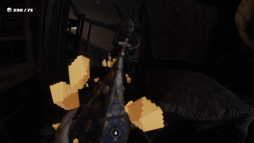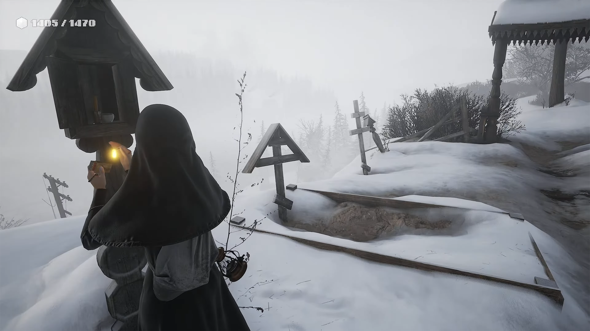 Интерфейс, разумеется, — не исключение. Здесь он представлен в виде абстрактных очков, которые собирает героиня за выполнение необязательных действий. Скажем, нашла Индика какой-нибудь священный образ вроде Параскевы Пятницы — получила 5 очков, зажгла свечку на кладбище и помолилась — получила 23 очка. Уже звучит довольно странно. Согласны? А потом, если игрок собрал достаточное количество поинтов, он может прокачать уровень, выбрав один из доступных перков. Вот только пользы в этих навыках нет никакой: вы просто будете получать ещё чуть больше очков. Даже сами разработчики в подсказках открыто называют прокачку бессмысленной. Но смысл тут всё же есть.