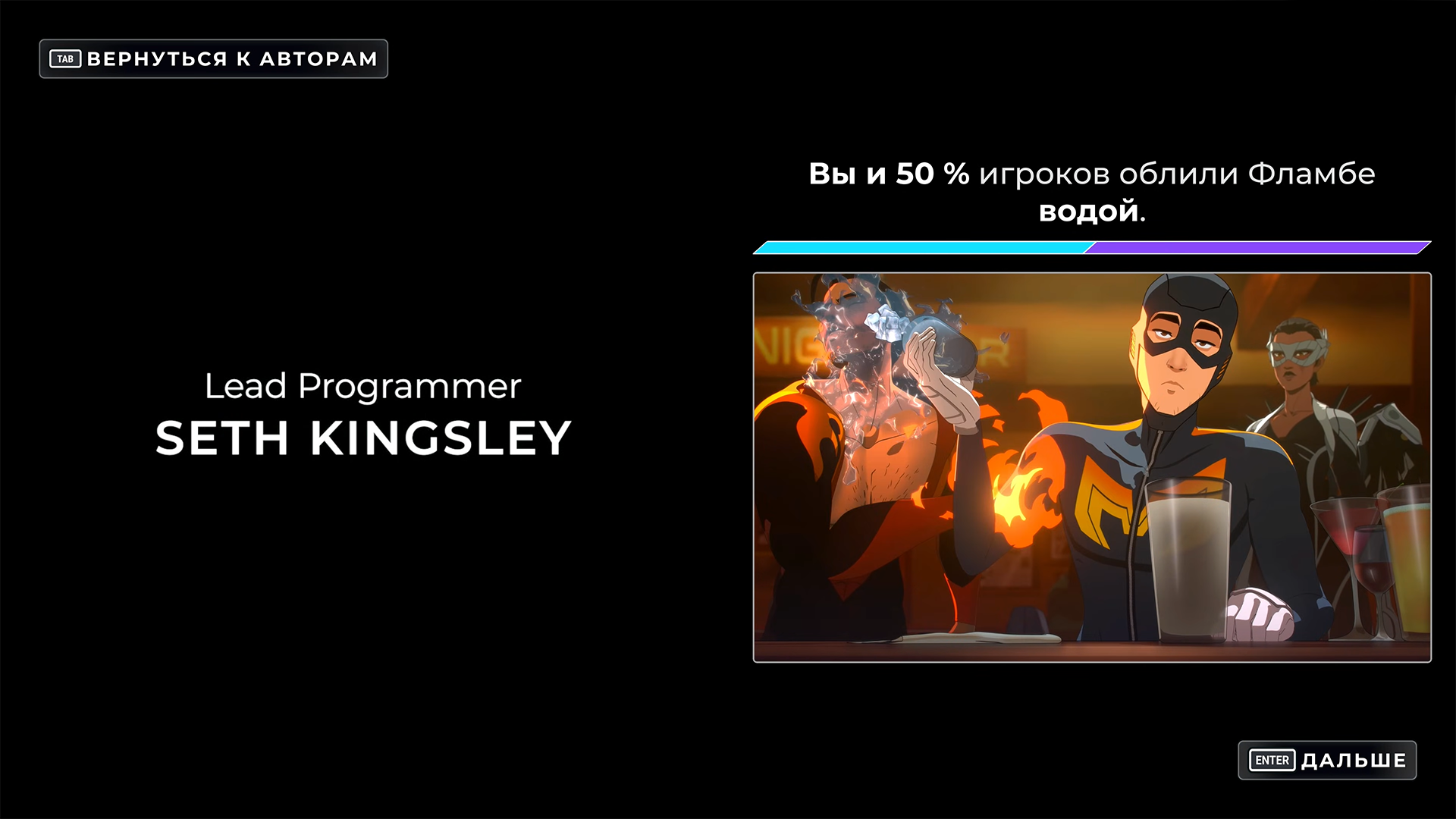Вообще, здравое зерно можно найти хоть в интерактивных фильмах от Telltale, которые славятся тем, что подавляющее большинство выборов в них на поверку оказываются лишь номинальными: временами не меняются даже встречные реплики персонажей. В частности, в недавней Dispatch, за которую ответственны как раз выходцы из Telltale, есть одна весьма показательная сцена. Обсуждая с Невидивой провал последнего задания, Роберт может сделать ей три разных упрёка, однако на каждый из них девушка отреагирует одинаково: сначала она скажет «Какого хрена?», а чуть погодя ударит главного героя прямо в нос (такие вот профессиональные отношения в СДС).