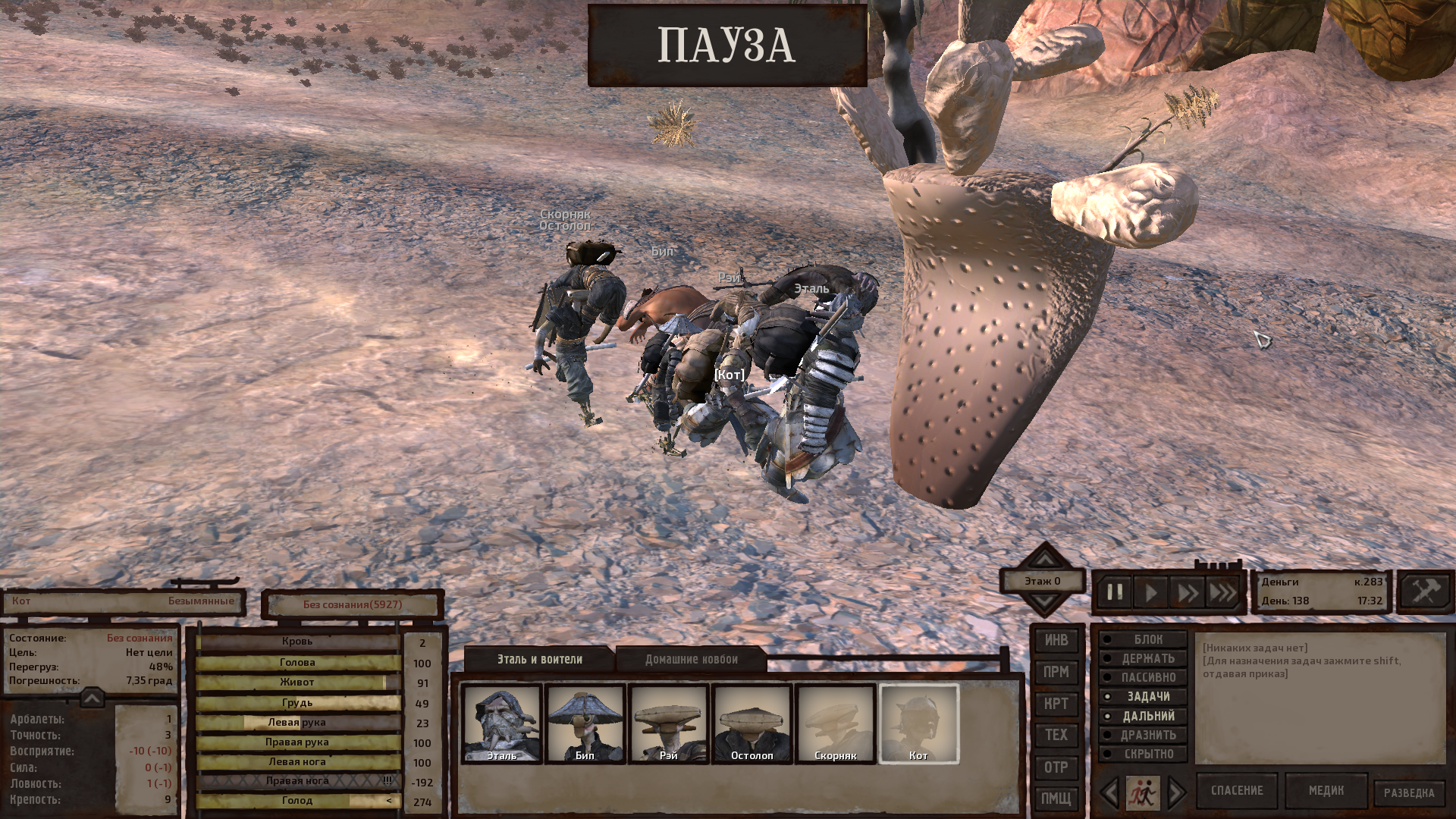 Команда отлично полакомилась краденными доспехами. Товарищи выгодно обменяли броню на еду и деньги и двинулись дальше в следующий город в поисках той самой земли обетованной. Время полетело с безумной скоростью. Монотонное многокилометровое шествие вытянуло из отряда почти все силы. Тут-то героям и попался очередной повод для встряски - выброс адреналина такой силы, что мертвого поднимет.