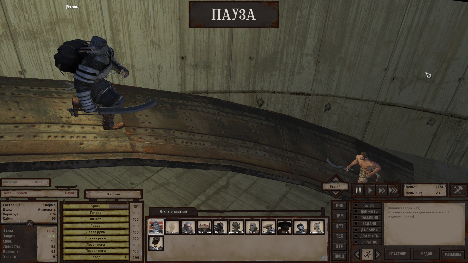 Следующий месяц можно описать тремя словами: автоматизация, исследования и производство. На новом месте герой и команда смогли подняться в полный рост. Пока товарищи изучали, строили и добывали, Эталь бродил по свету и ловил разнокалиберных преступников. Глава Красных Сабель, король пыльных бандитов, глава ниндзя Черного Дракона и болотных ниндзя. Эталь стал одним из самых страшных воинов, каких можно было встретить на континенте, однако это, как он позже выяснил, не делало его неуязвимым.