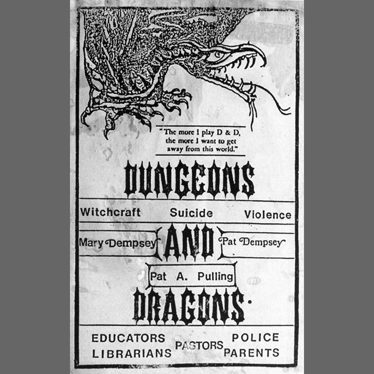 В том же 1982 году активистка Патрисия Пуллинг возглавила созданную ей же организацию «Bothered about Dungeons & Dragons», сокращенно «BADD». И повод для создания организации на самом деле грустный, ее несовершеннолетний сын покончил с собой выстрелив себе в грудь. Патрисия подавала в суд на преподавателя школы, где учился ее сын, обвиняя его в том, что он познакомил пацана с игрой, говорила, что ее сын покончил с собой из-за заклинания, которое на него наложили в ходе игры, а также подавала в суд на издателя «DnD». Но все иски не были приняты судом. Сама же Патрисия не забросила свой крестовый поход и продолжила нападки на ролевую игру, распространяя брошюры и листовки о вреде игры и обвиняя ее в: демонологии, язычестве, вудуизме, убийствах, насилии, богохульстве, растлении малолетних, самоубийствах, извращениях, садизме, проституции, каннибализме, некромантии и прочих нехороших вещах.