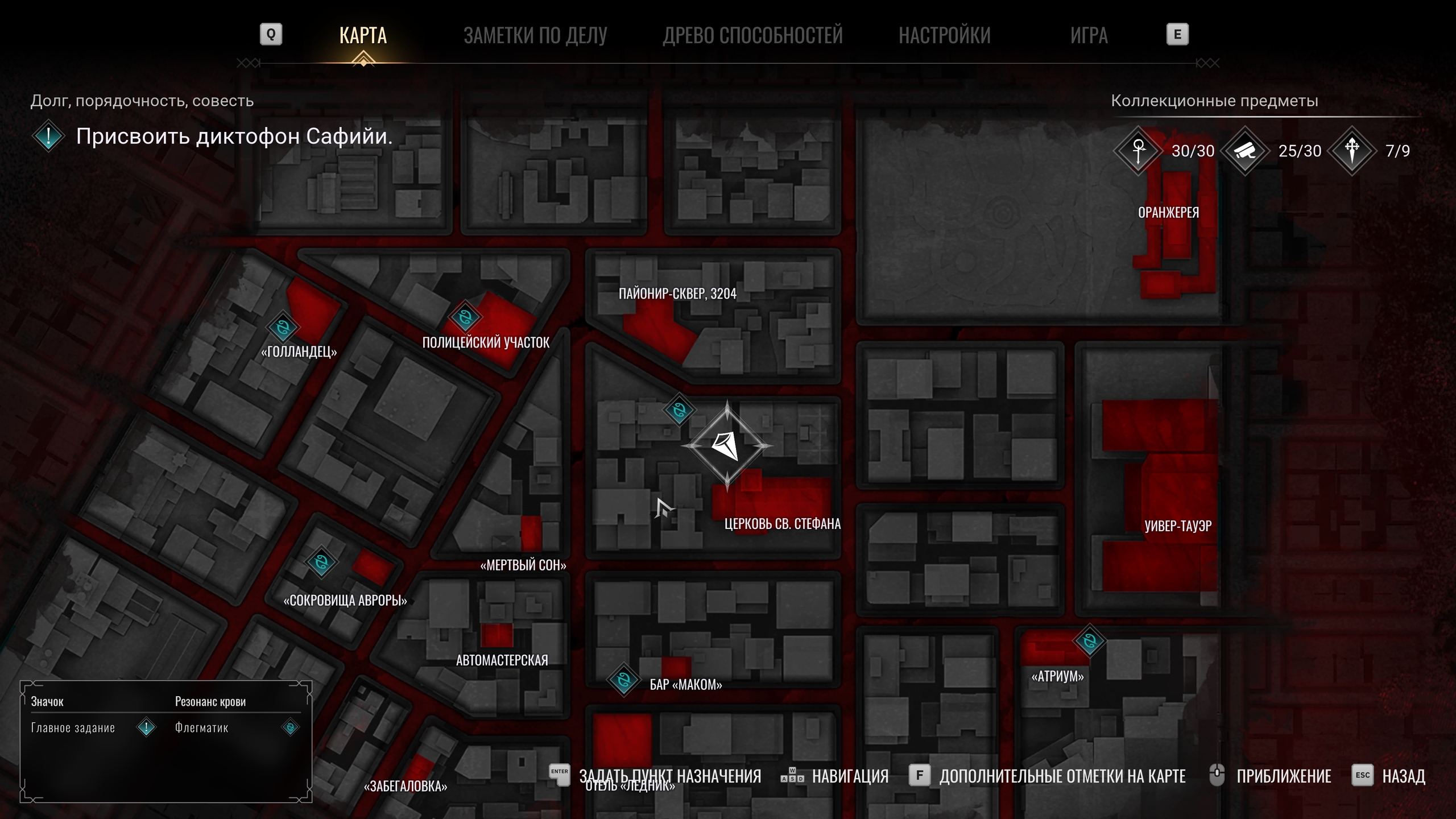 В этом нам будет помогать «голос в голове» - сознание вампира-детектива, которого мы убили при своем пробуждении. Он на 100% местный, знает все про всех (ну почти), так что такой ход позволяет нам лучше погрузиться в происходящее.