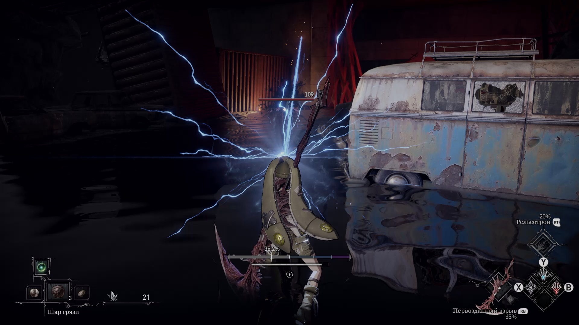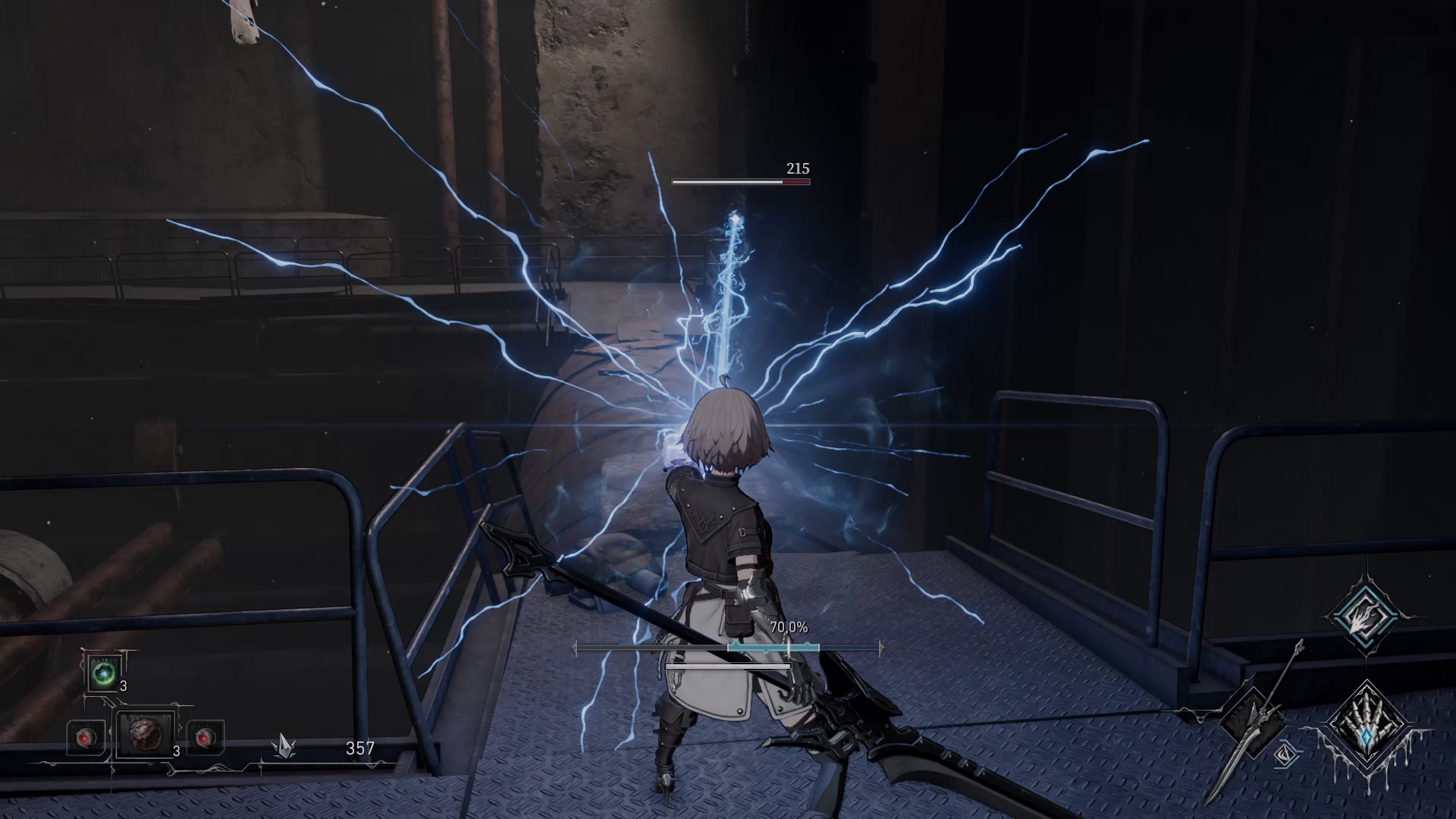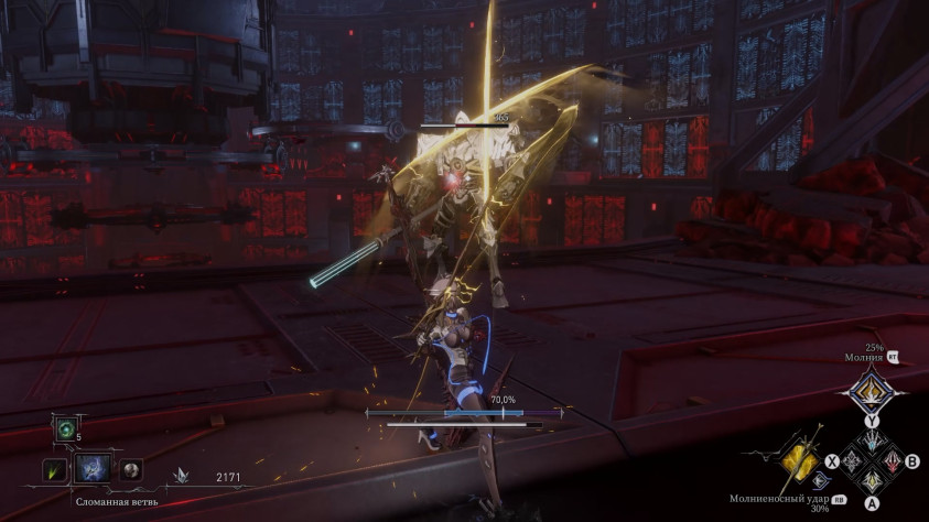 - Электро-рывок. Единственная абилка, с которой я нормально не разобрался. В теории, она даёт фреймы неуязвимости, наносит урон и даже не тратит полоску «синхронизации», если идеально таймить её пролетая сквозь атаки противников. Но у меня с этим как-то не срослось. Поэтому, не могу рассказать о ней в деталях.