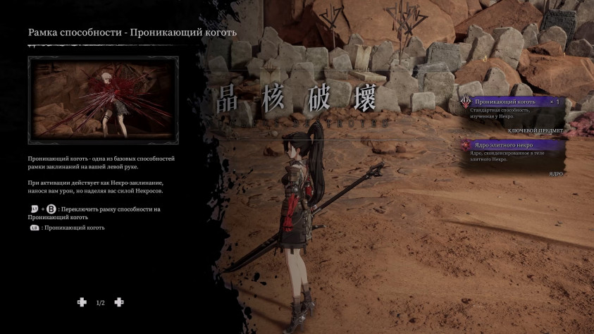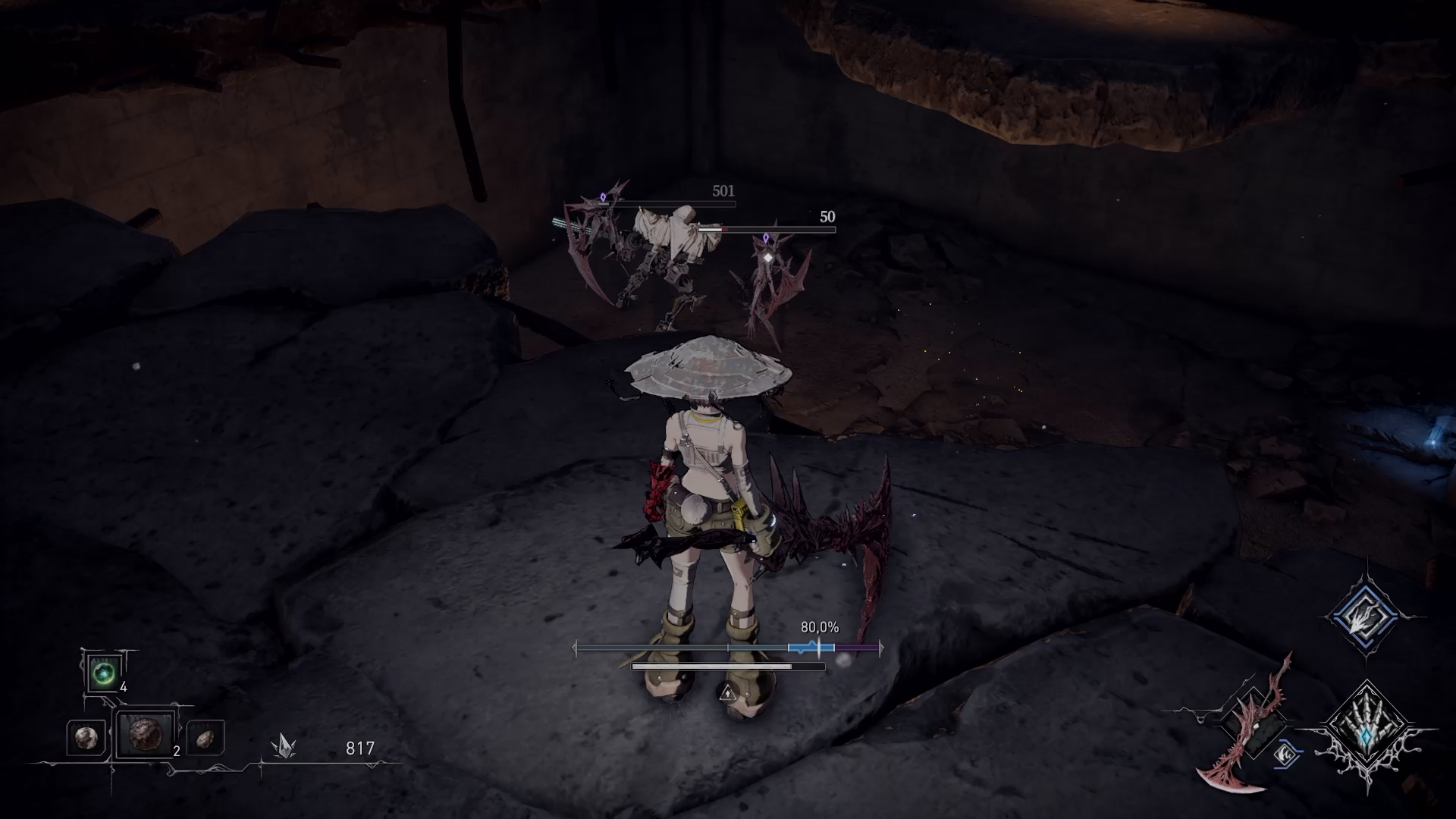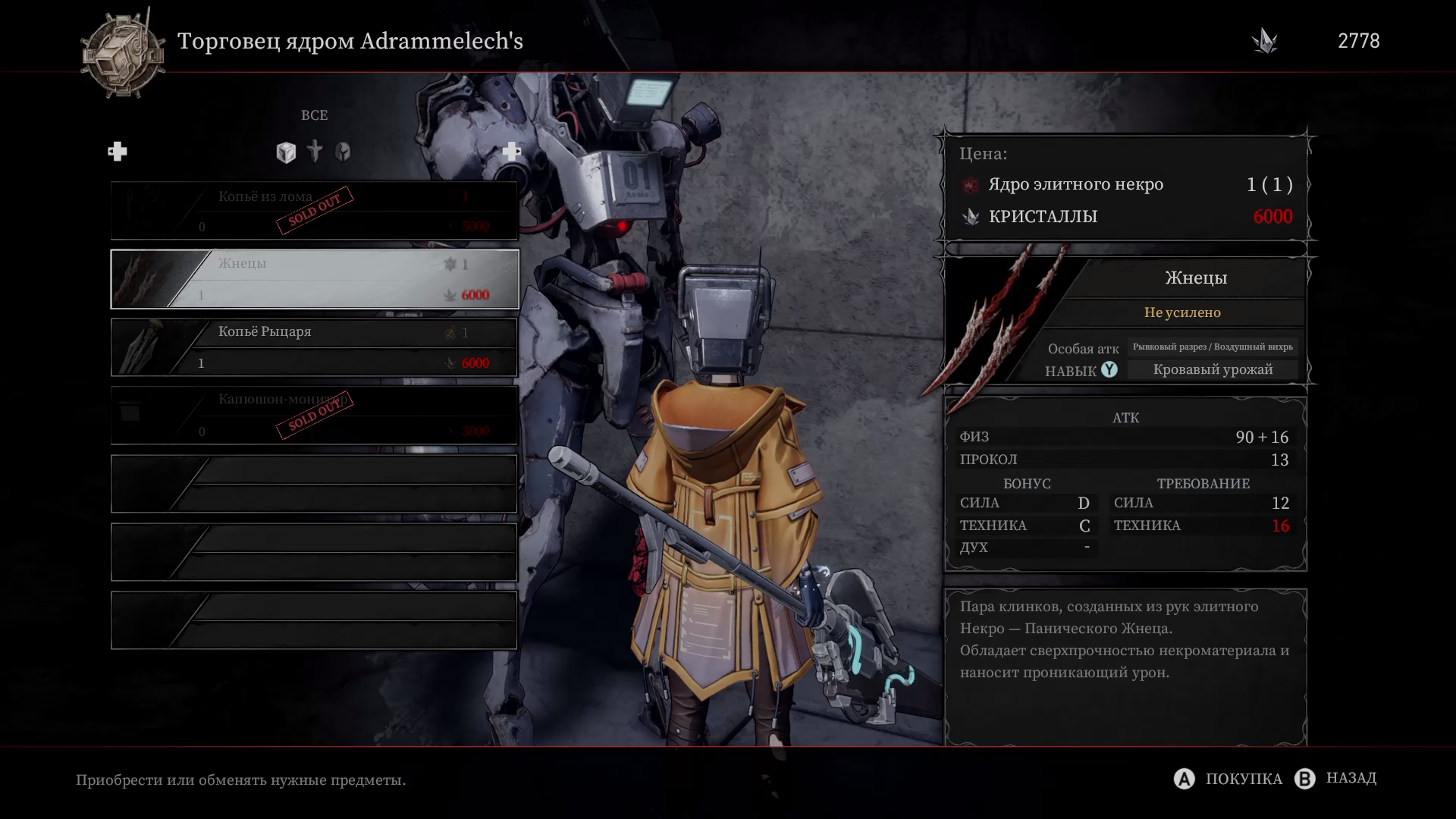 Прокачка здесь довольно типичная для соулс-лайков. За убийства врагов, мы получаем кристаллы (местные души), которые тратятся на повышение уровня, торговлю и прокачку оружия (вместе с точилками).