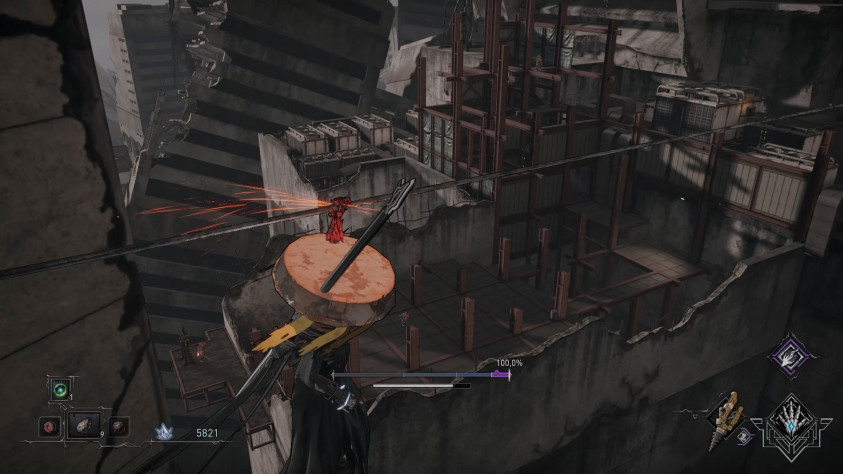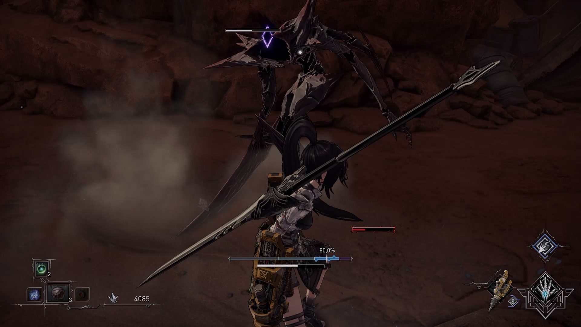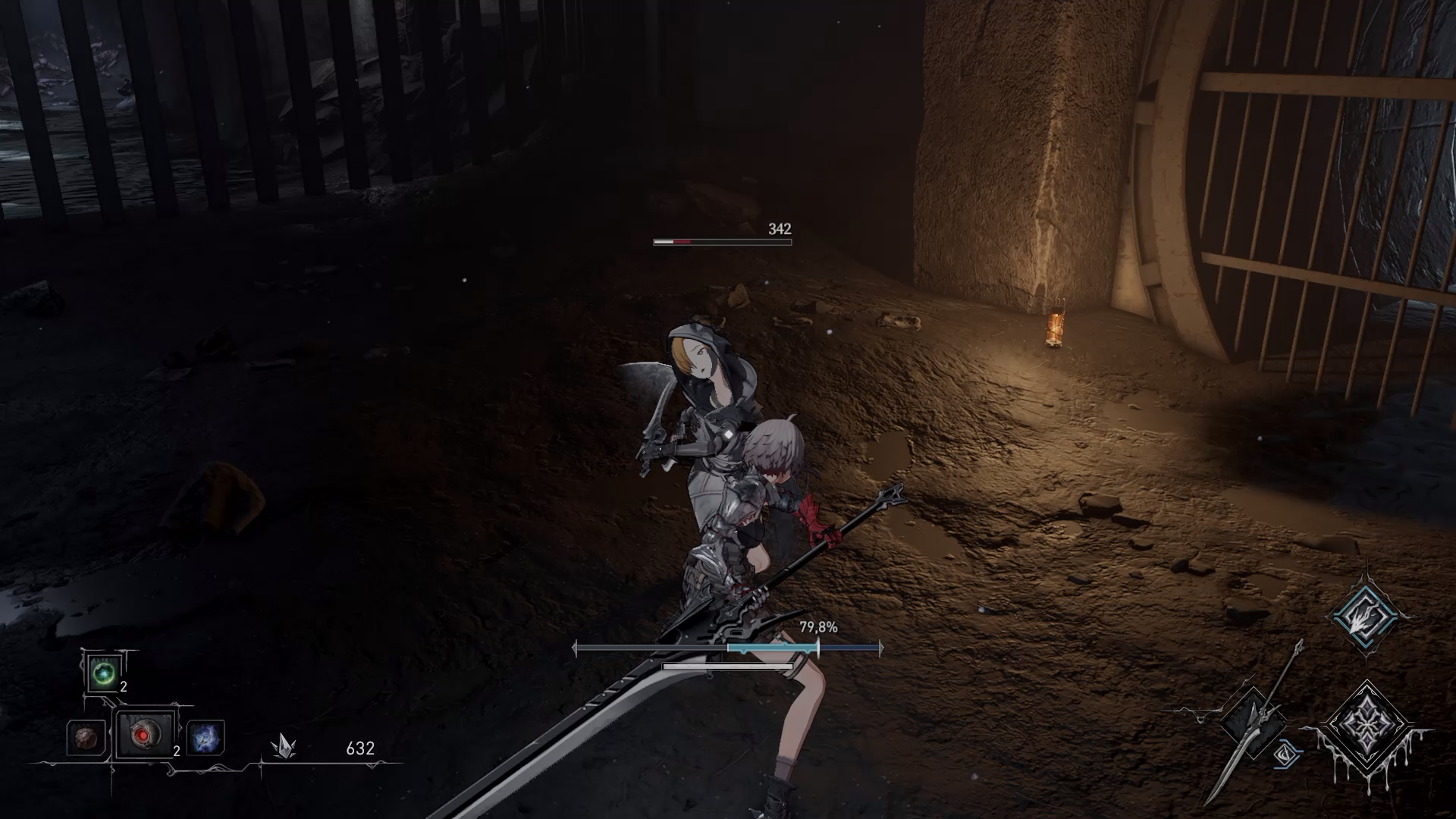 Работает полоска этой «синхронизации» следующим образом. Она разбита на несколько секторов. И чем больше этих секторов заполнены, тем выше урон нашей героини Аррисы. Соответственно, чем меньше у неё заполнена полоска «синхронизации» — тем ниже и урон. За нанесение урона врагам полоска заполняется, а от получения урона — уменьшается. Но кроме того, её можно тратить на уникальные оружейные навыки, на каст заклинаний и на абилки самой Аррисы. По сути, «синхронизация» здесь одновременно является и «концентрацией» и маной.