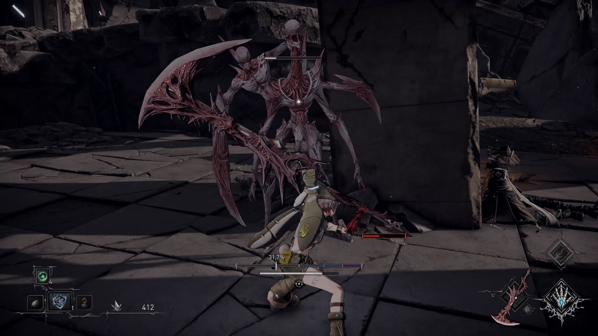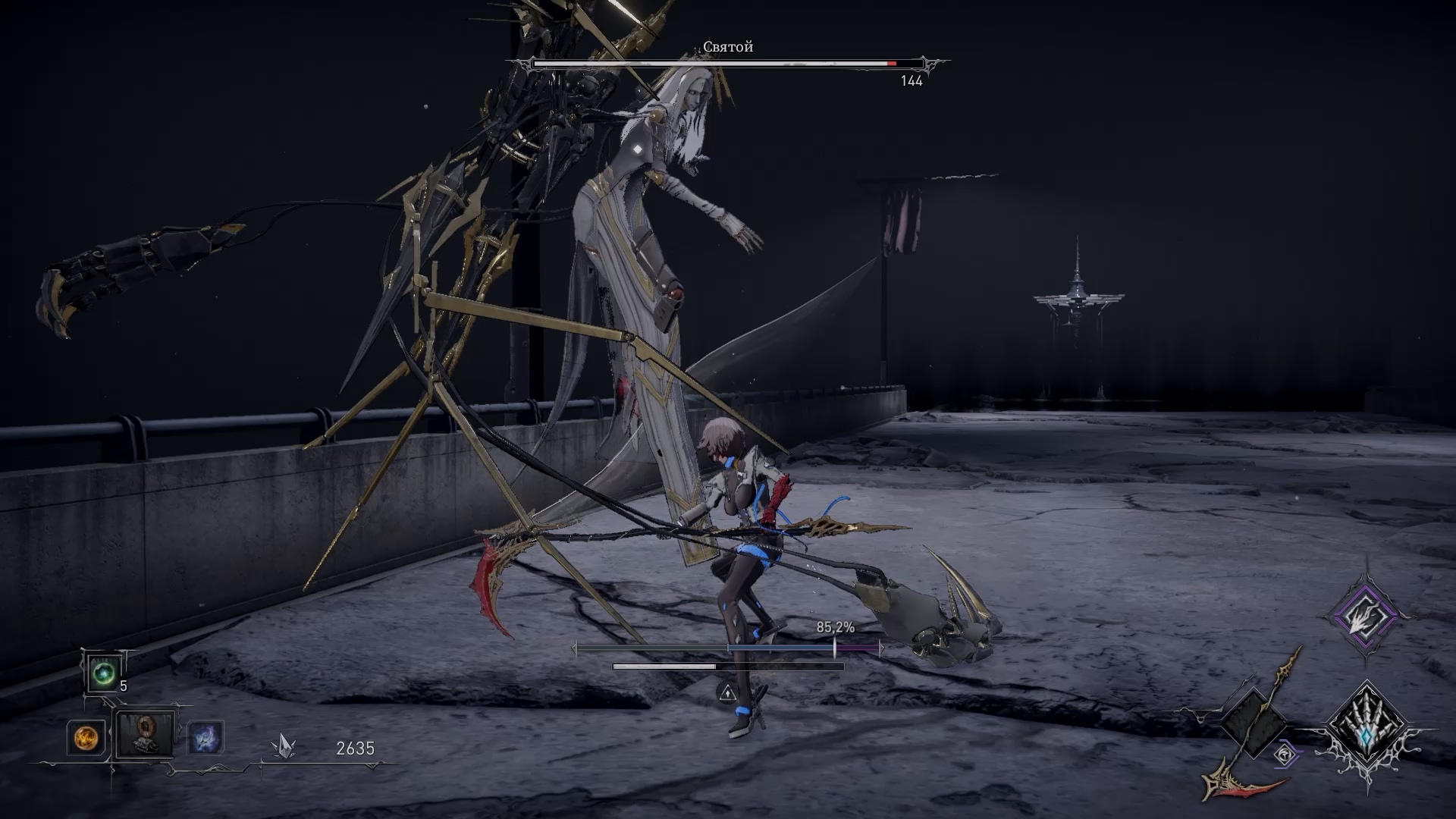 Но попадаются и весьма сложные боссы. Троих я бы выделил отдельно, так как они мне показались даже сложнее значительной части боссов игр от From Software. И так уж сложилось, что все три этих босса — это Клинки, которые по определённым сюжетно-лорным причинам оказались по другую сторону баррикад. Пожалуй, у боссов-Клинков самые комплексные и сложные мувсеты с обилием различных атак.