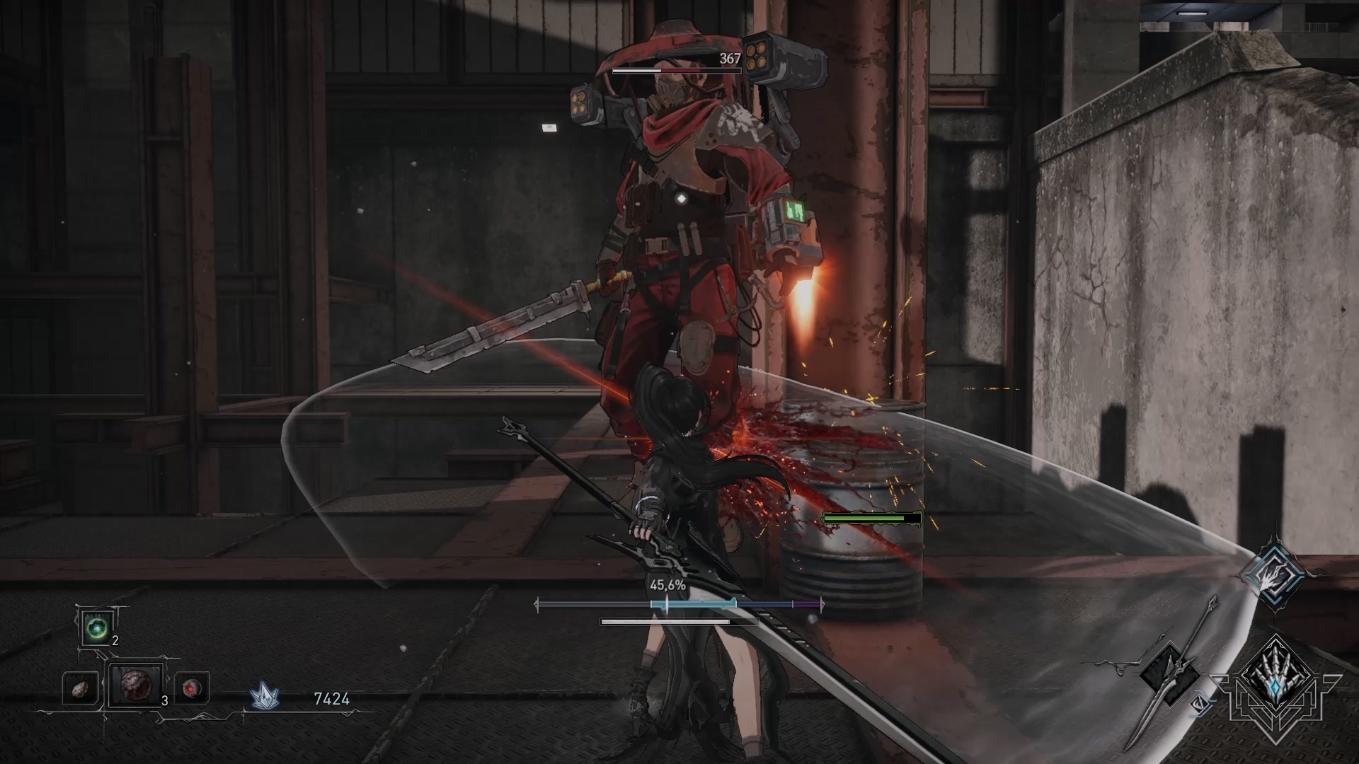 Что касается оружия, то его в игре не так уж много, но более чем достаточно. К тому же, как упоминал чуть выше, каждая пушка обладает уникальным навыком. В остальном, непосредственно оружейная боёвка ограничивается обычными ударами или сериями ударов, силовыми и заряженными. Заряженные удары зачастую имеют дополнительную атаку.