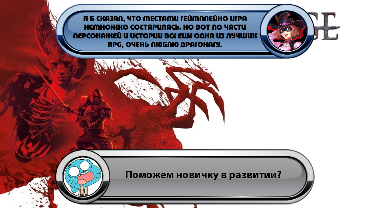 Достаточно компактный блог, который рассказывает об ощущениях автора от Dragon Age: Origins. Работу хотелось бы подсветить в том числе потому, что автор вообще-то совсем недавно на сайте, а уже пишет недурные тексты.