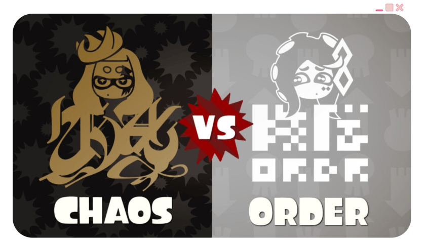 Порядок — воплощение статичности, комфортного постоянства. Порядок как тема игры появился вследствии участия игроков, о чём будет сказано чуть позже. Внутри мира Splatoon Порядок имеет природу, подобную небу в Альтерне. Он возник из желания постоянства некоторых осьморианцев, помогавших Марише с созданием «Консерватории». Дело в том, что после событий прошлого дополнения мир серьёзно изменился. Множество осьмолингов выбрались из подземных городов и начали интегрироваться в общество наземных жителей. Здесь разработчики в очередной раз ловко совместили игровые возможности и сюжет, ведь только с третьей части абсолютно всем игрокам стала доступна опция игры за персонажа-осьмолинга.