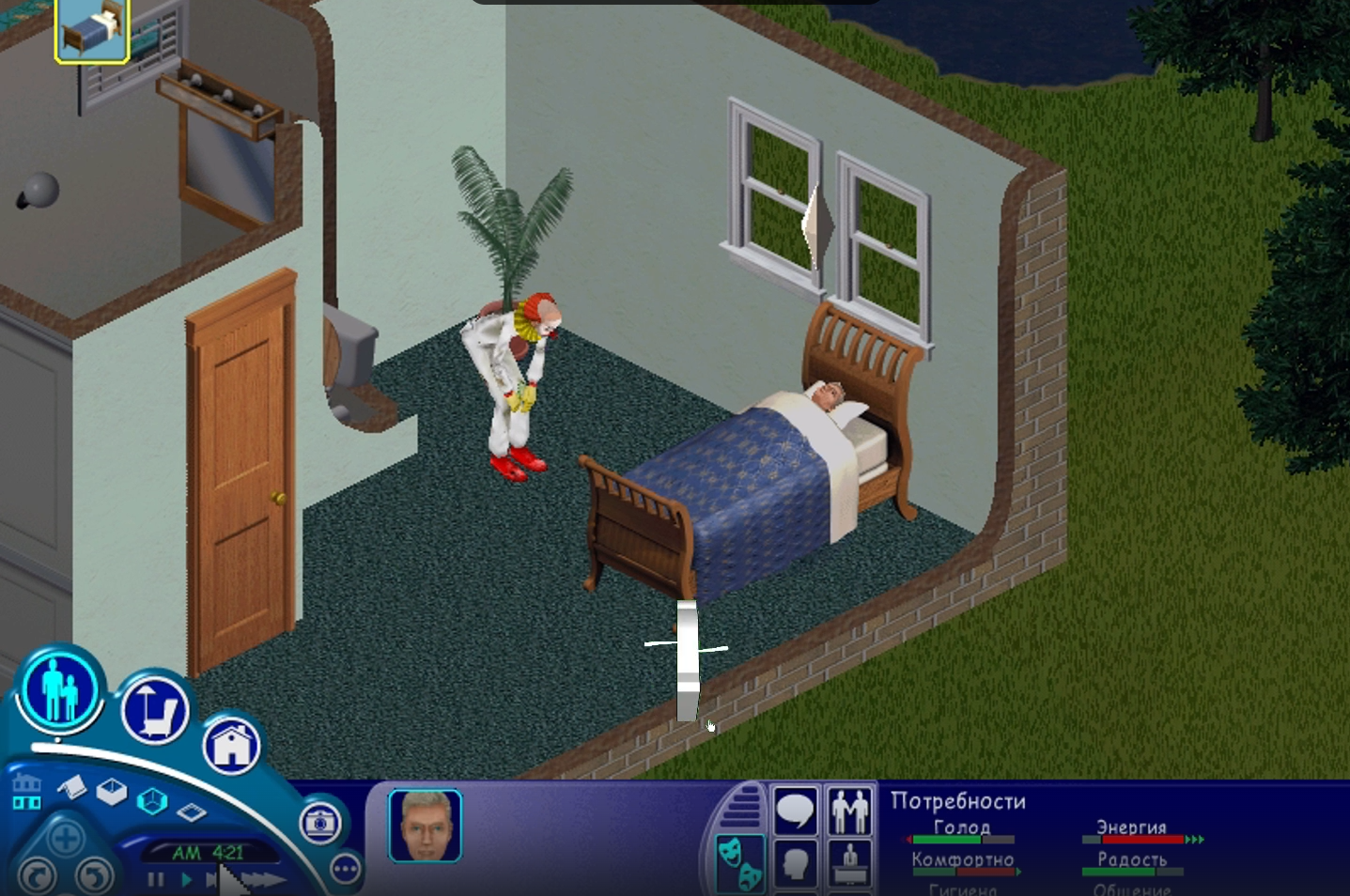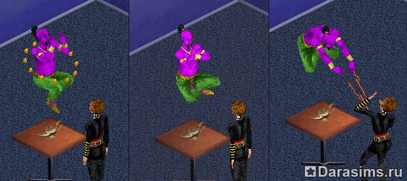 Бывало такое, что ваш Сим впадал в депрессию. В этом случае при условии, что в вашем доме висела определенная картина с клоуном, этот жуткий уродец обязательно приходил к вам в гости. Клоун всячески кривлялся, показывал нелепые пантомимы и орал, не обращая внимания на хозяев дома и вообще на время суток.